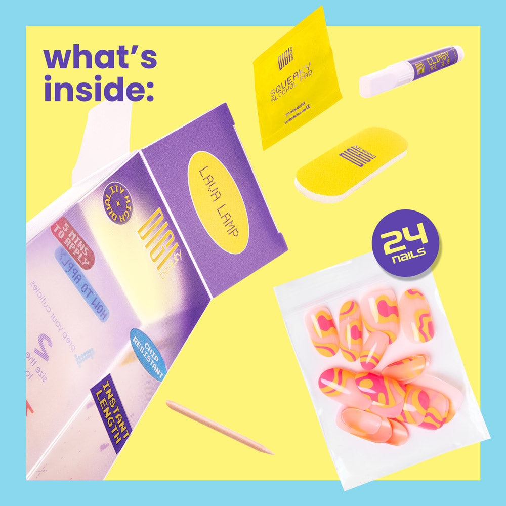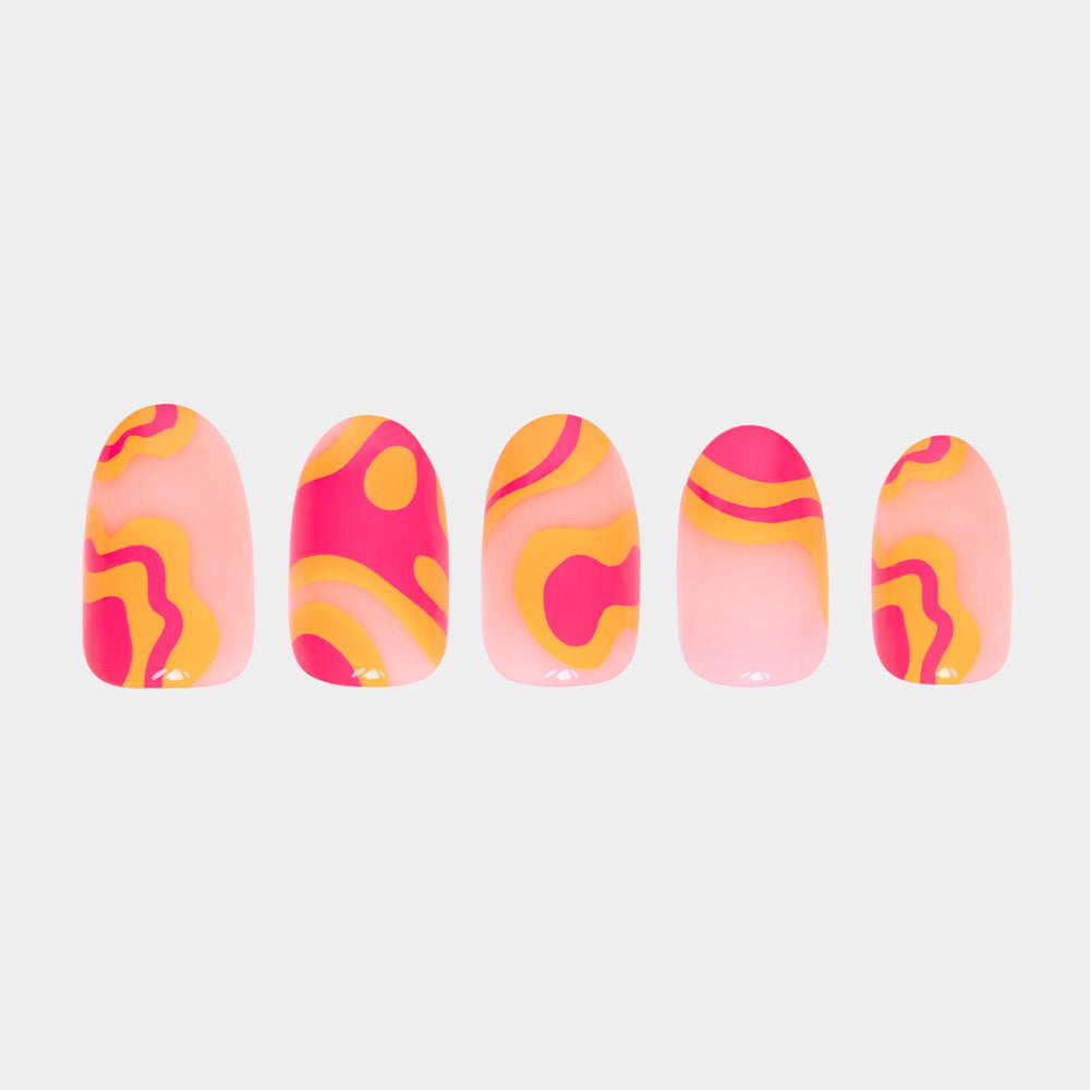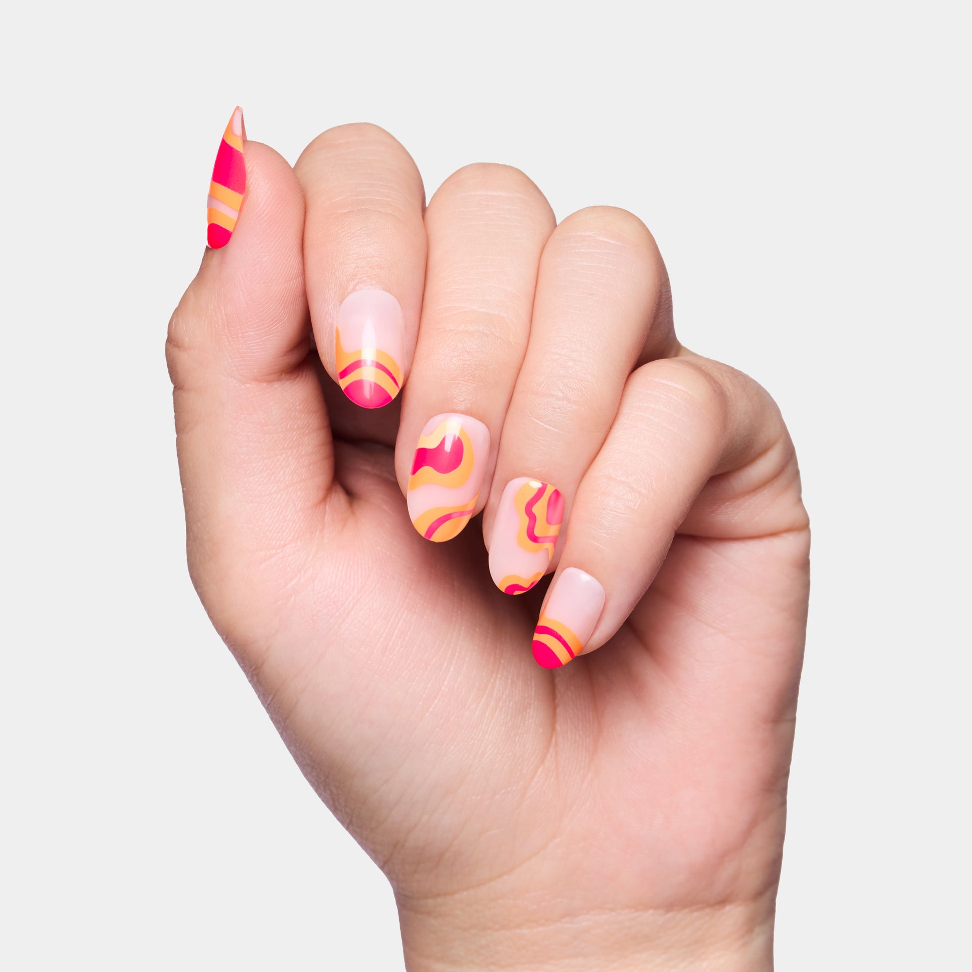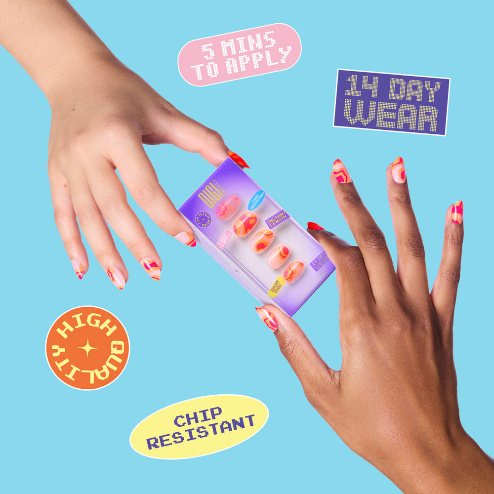 This set is pure retro energy. Press them on in just 5 minutes on your way to a vintage market or a throwback movie night and vibe for up to 14 days of colorful moments.