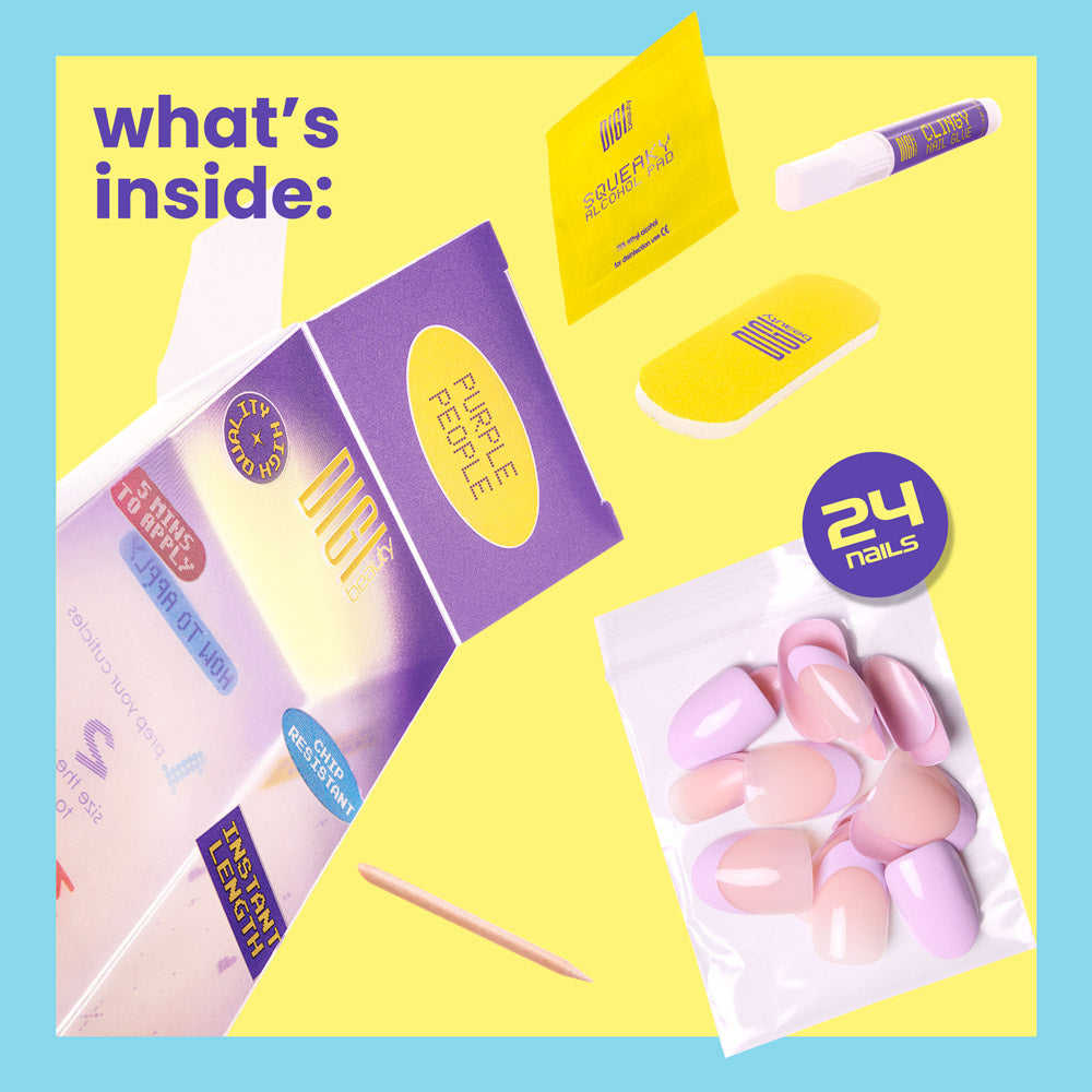 For the purple-obsessed, we see you! Lavender tips and solids keep things fun and unexpected. Because let's be real: purple goes with everything, everywhere, every day.