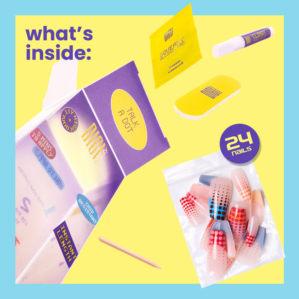 Channel your creativity with a set made for the ones who aren't afraid to color outside the lines. Bold and playful, it’s all about making your own rules, because life is too short for boring nails.